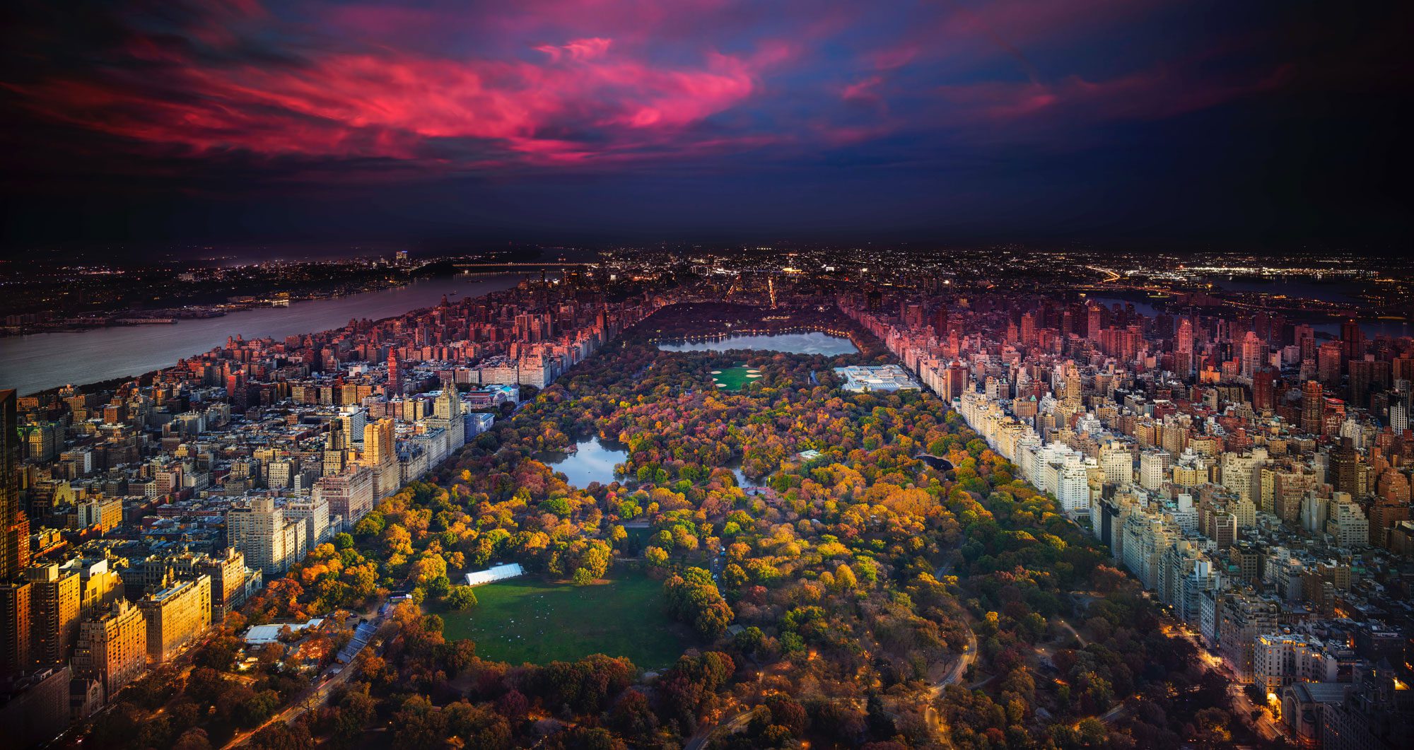 Art Inquiry: The Four Seasons, View of Central Park, Fall, Day to Night, Stephen Wilkes